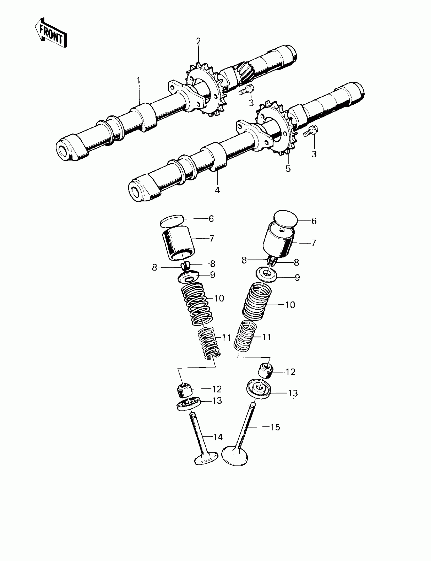 Kawasaki Z1R CAMSHAFTS/VALVES ('80 D3) Diagram