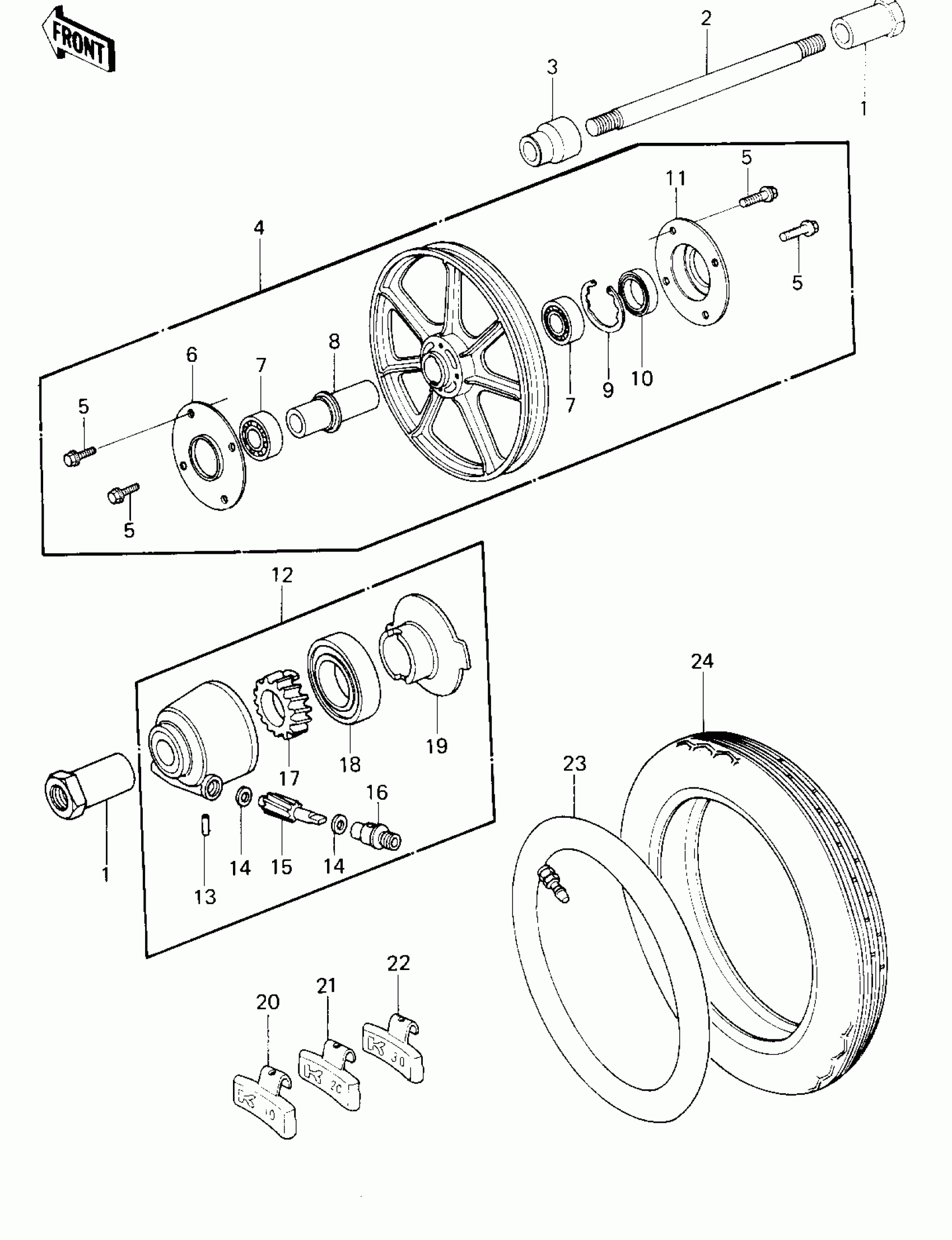 Kawasaki Z1R FRONT WHEEL/TIRE/HUB ('80 D3) Diagram