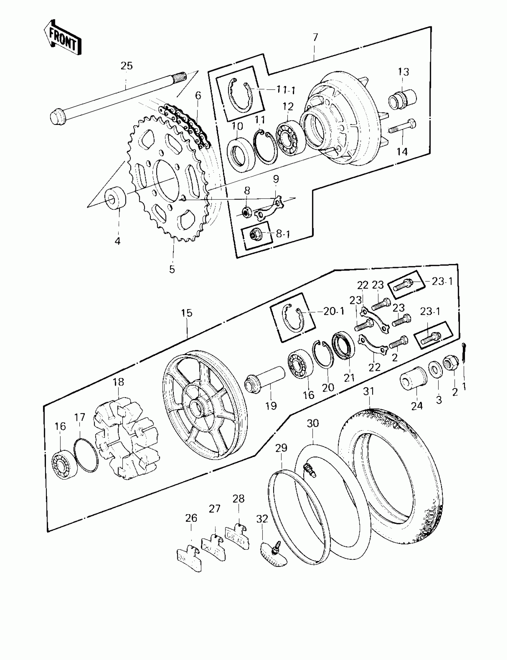 Kawasaki Z1R REAR WHEEL/TIRE/HUB/CHAIN ('80 D3) Diagram