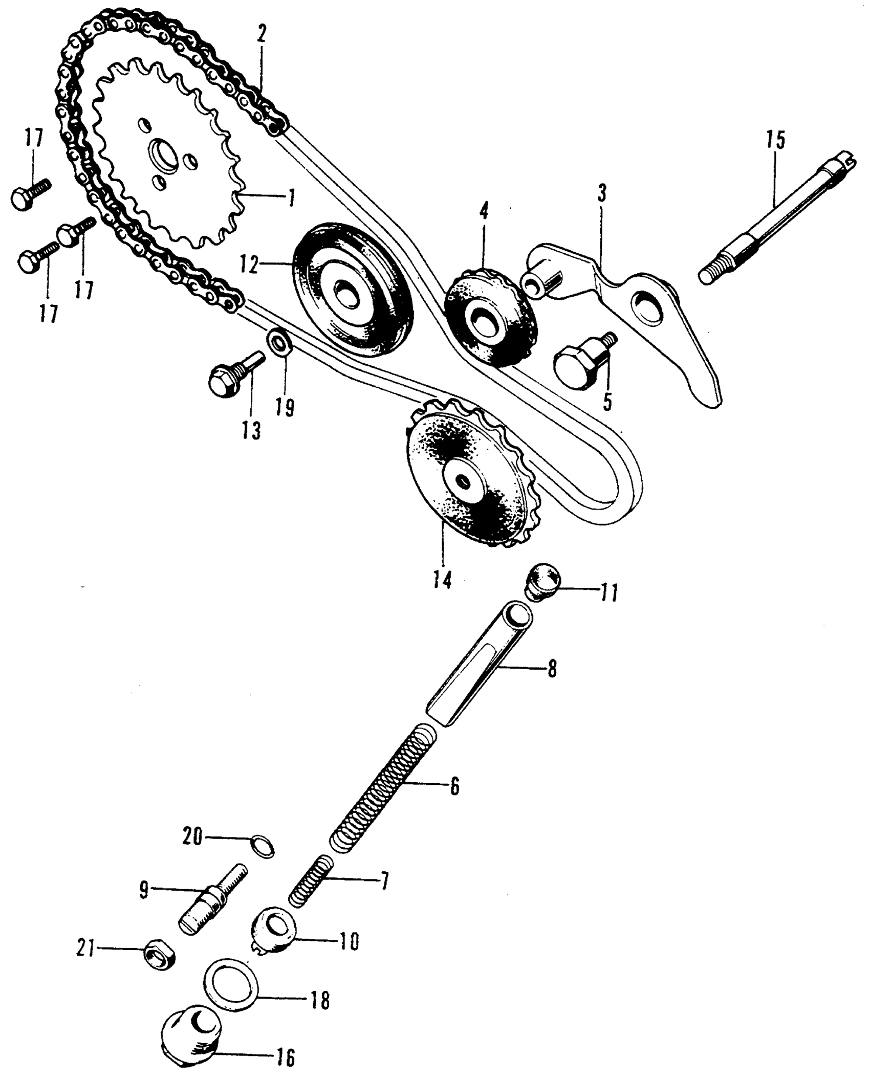 Honda Z50AK5A MOTORCYCLE, JPN, VIN# Z50A-5000001 TO Z50A-5033245 CAM CHAIN + TENSIONER Diagram