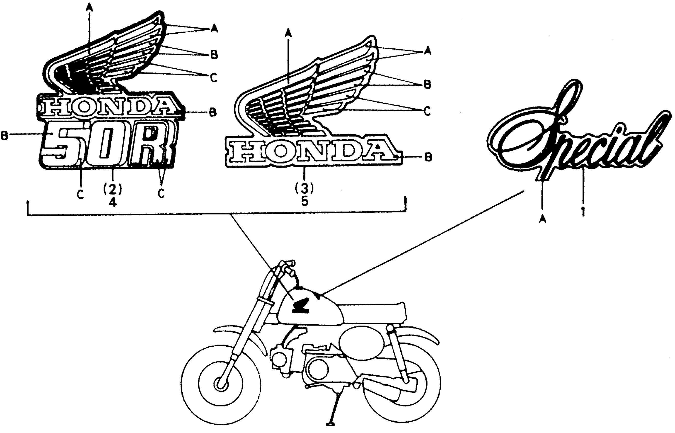 Honda Z50RA (87) MOTORCYCLE, JPN, VIN# JH2AB020-HS800001 TO JH2AB020-HS803002 EMBLEM 86-87 Diagram
