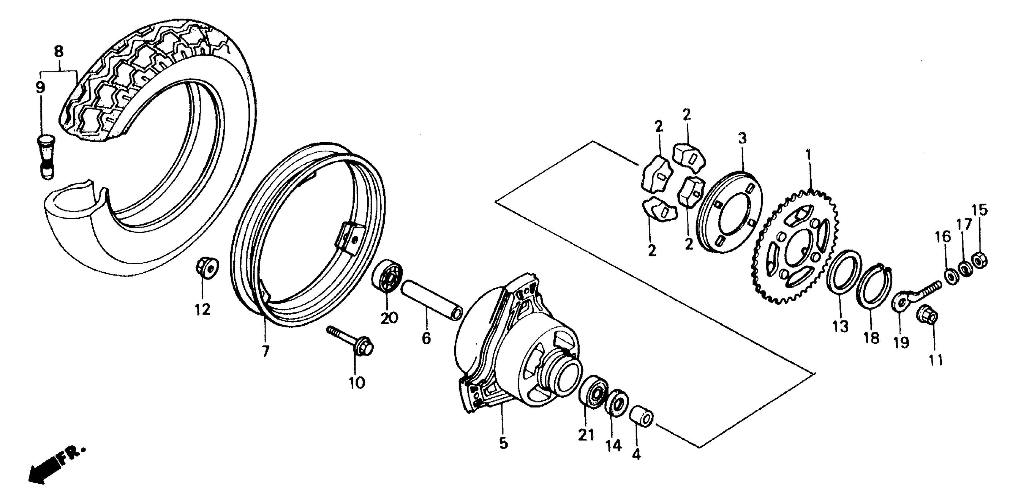 Honda ZB50A (88) MOTORCYCLE, JPN, VIN# JH2AB220-JS000006 TO JH2AB220-JS003064 REAR WHEEL Diagram