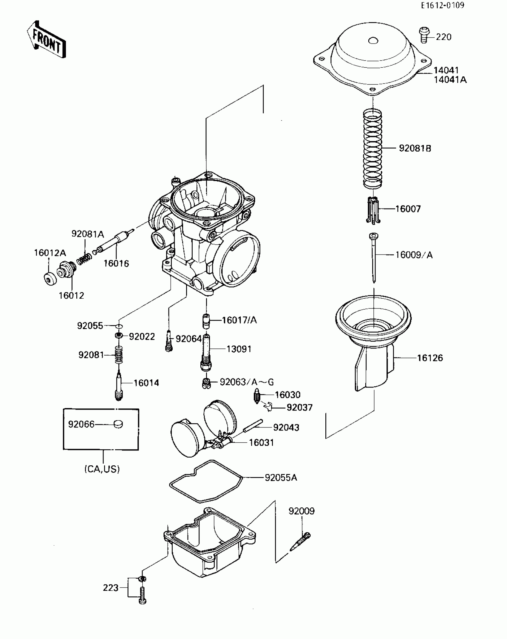 Kawasaki ZL600 Eliminator CARBURETOR PARTS Diagram