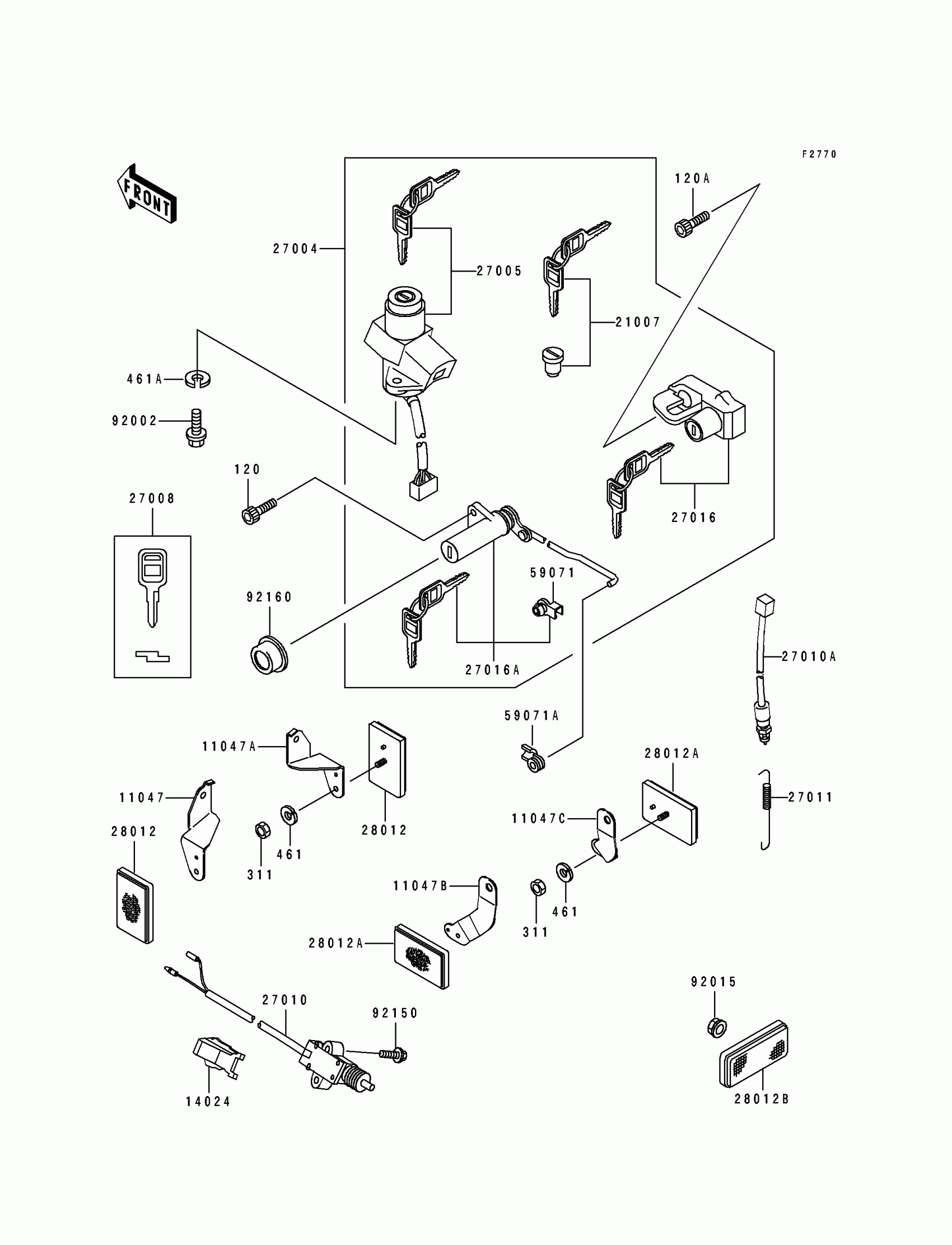 Kawasaki ZR1100 Zephyr Ignition Switch/Locks/Reflectors Diagram