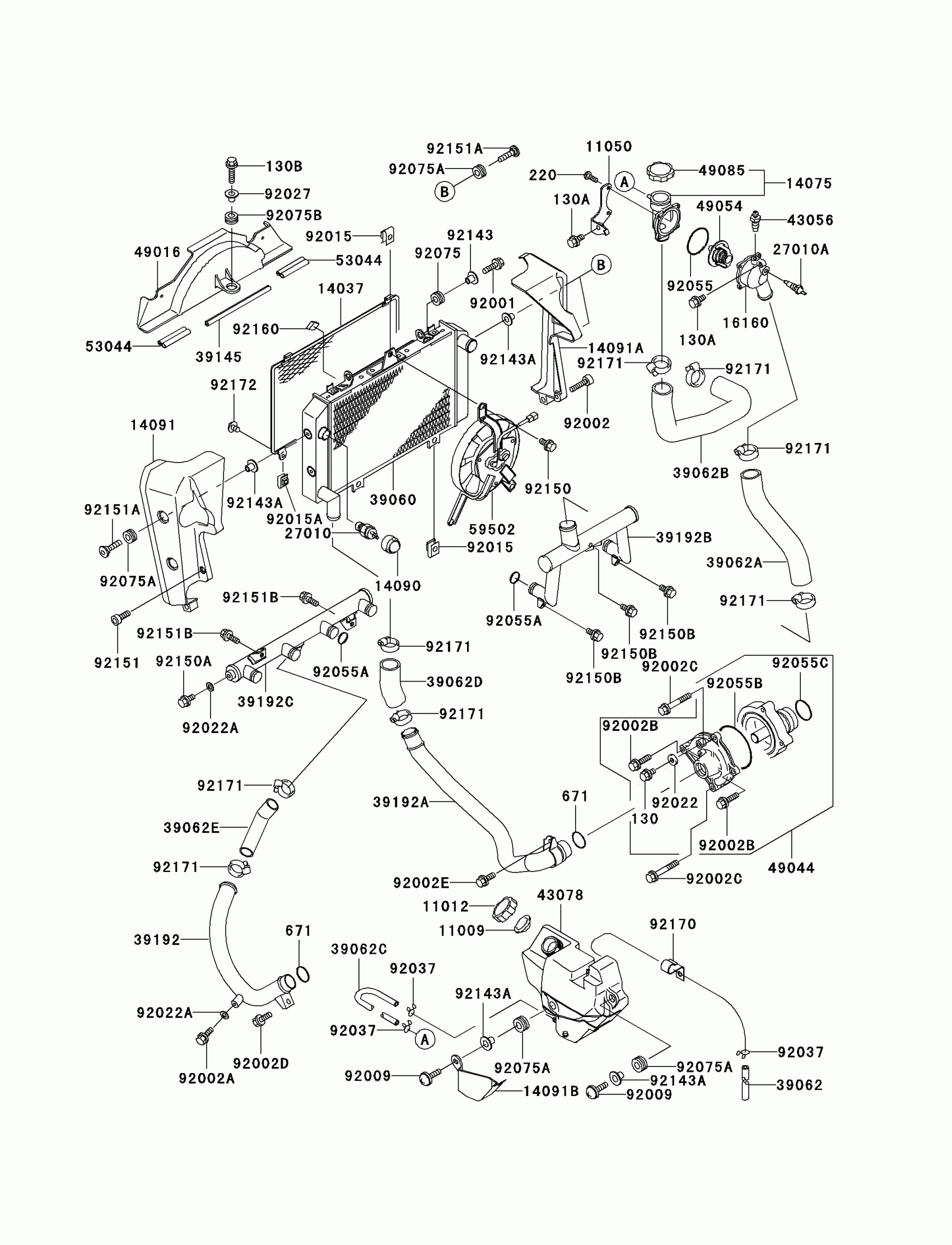 Kawasaki ZRX1200R Radiator Diagram